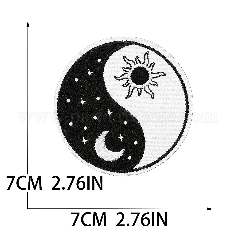 • Черный Компьютеризированная вышивка тканью утюжок на / шить на заплатках, аксессуары для костюма, аппликация, инь-ян, чёрные, 70 мм