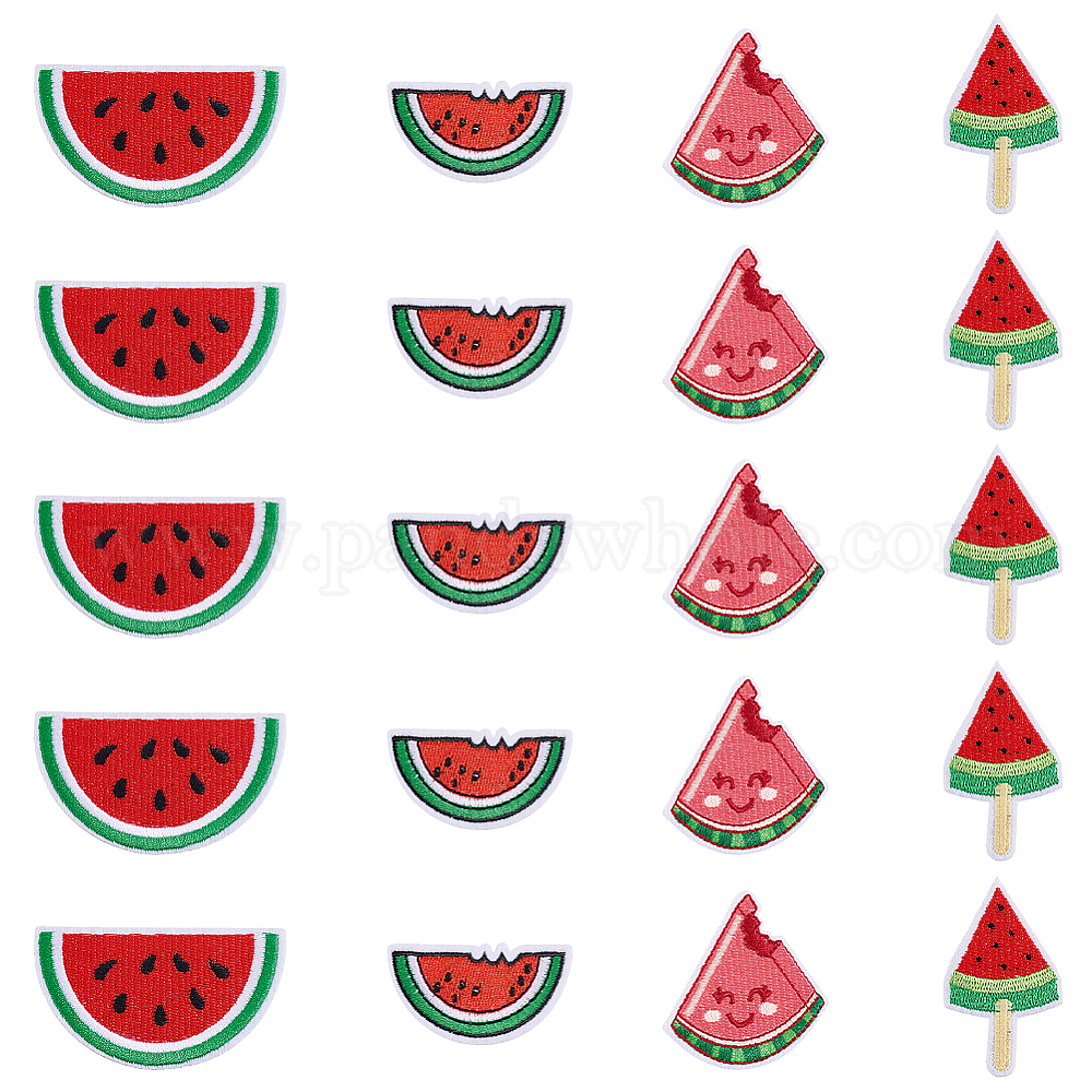 20 шт. 4 стили арбуз нейлон компьютерная вышивка ткань приклеиваемые/пришиваемые нашивки, аксессуары для костюма, аппликация