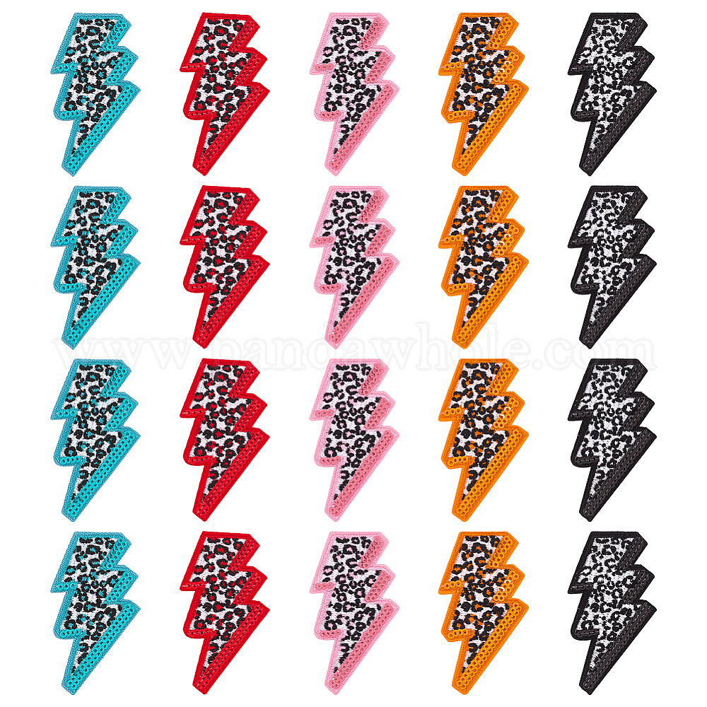 20 шт 5 цвета компьютеризированная вышивка ткань утюг / пришивание заплат, аксессуары для костюма, аппликация, удар молнии, леопардовым принтом