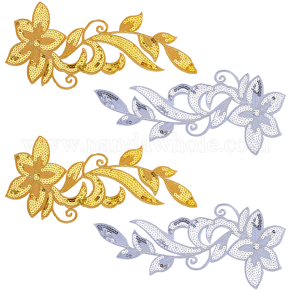 2 пары 2 цвета полиэстер вышивка орнамент аксессуары, пришить заплатки к одежде с блестками, цветок