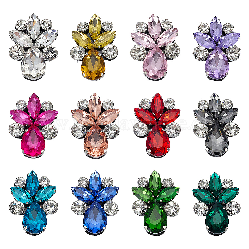 12 шт. 12 цветные стразы-цветы с фетровыми нашивками для пришивания и утюжки, аппликации из ткани, платина