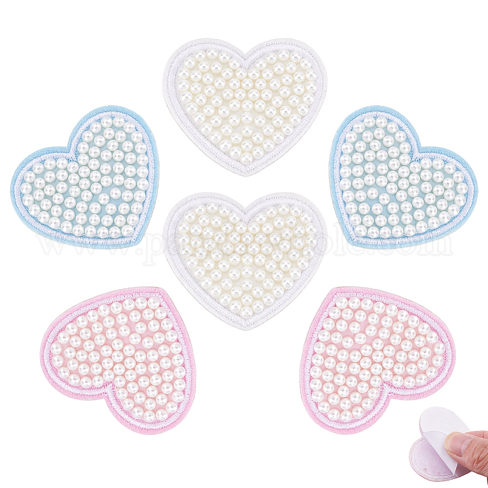 6 шт 3 цвета полиэстер компьютеризированная ткань для вышивания утюгом / пришивание заплат, аксессуары для костюма, аппликация, с ABS имитации жемчуга, сердце