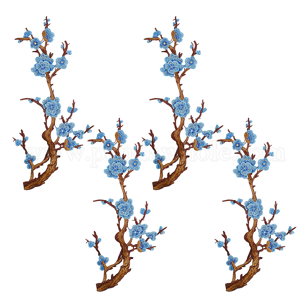 • Темно-Голубой Нашивки на одежду из полиэстера, цветка сливы, глубокое синее небо, 430x205x1.5 мм