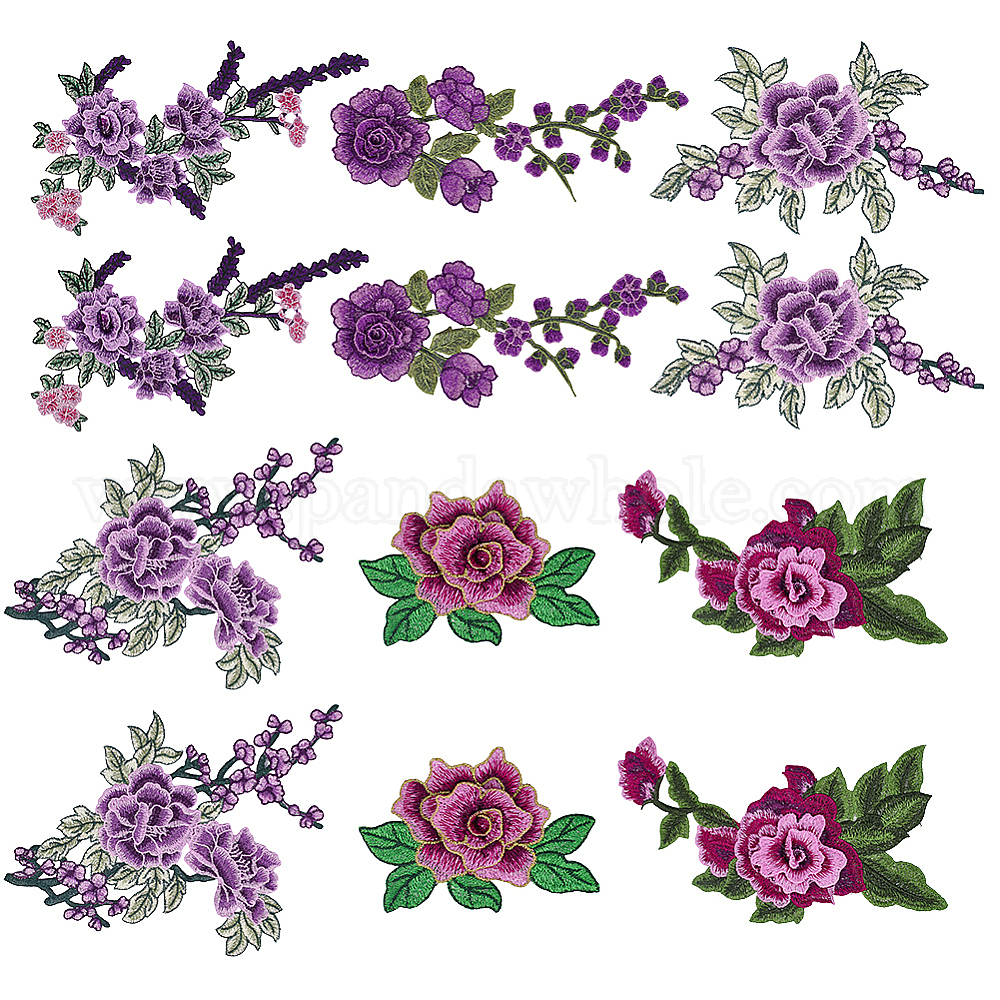 • Фиолетовый 5 стили полиэстеровых нашивок для одежды, цветок, фиолетовые, 78~390x106~230x2~4 мм