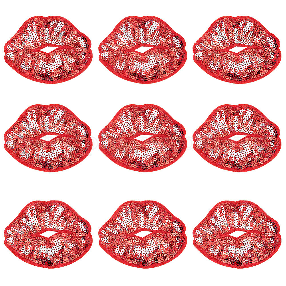 • Красный Нашивки из полиэфирной ткани, губа, с пластиковыми пайетками, красные, 66x82x1 мм