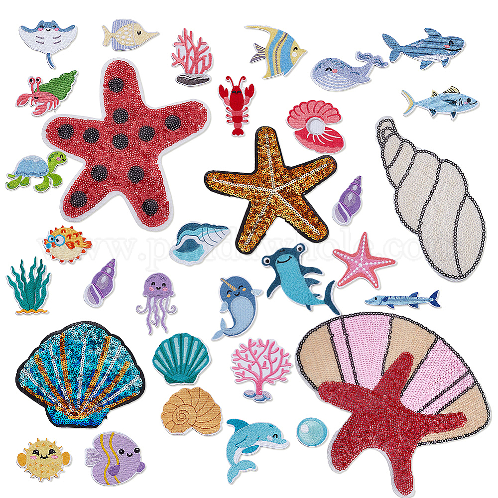 33шт. 2пакет 2 стили, нашивки на морскую тематику, полиэстер, пришивные/приклеиваемые утюгом, термоклей, аппликации из ткани, разнообразные