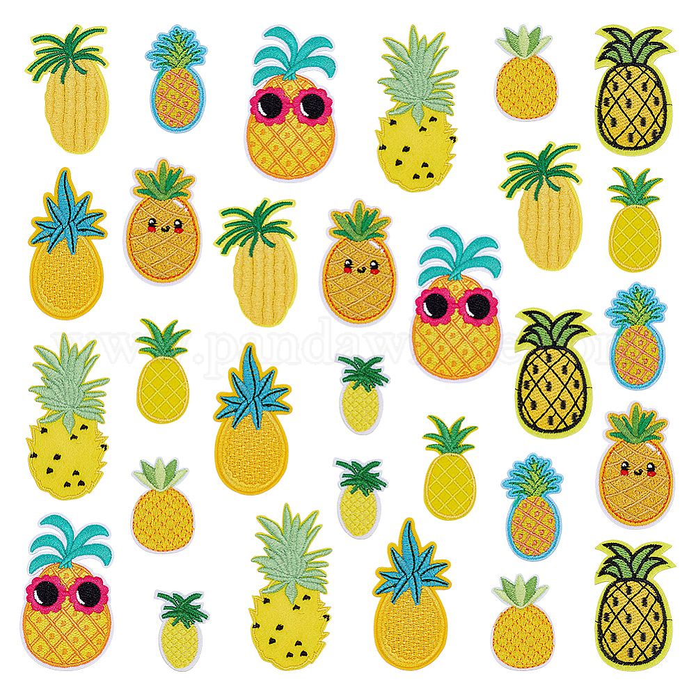 30 шт. 10 стили полиэстеровые заплатки для пришивания и утюжки, термоклей, аппликации из ткани, фрукты