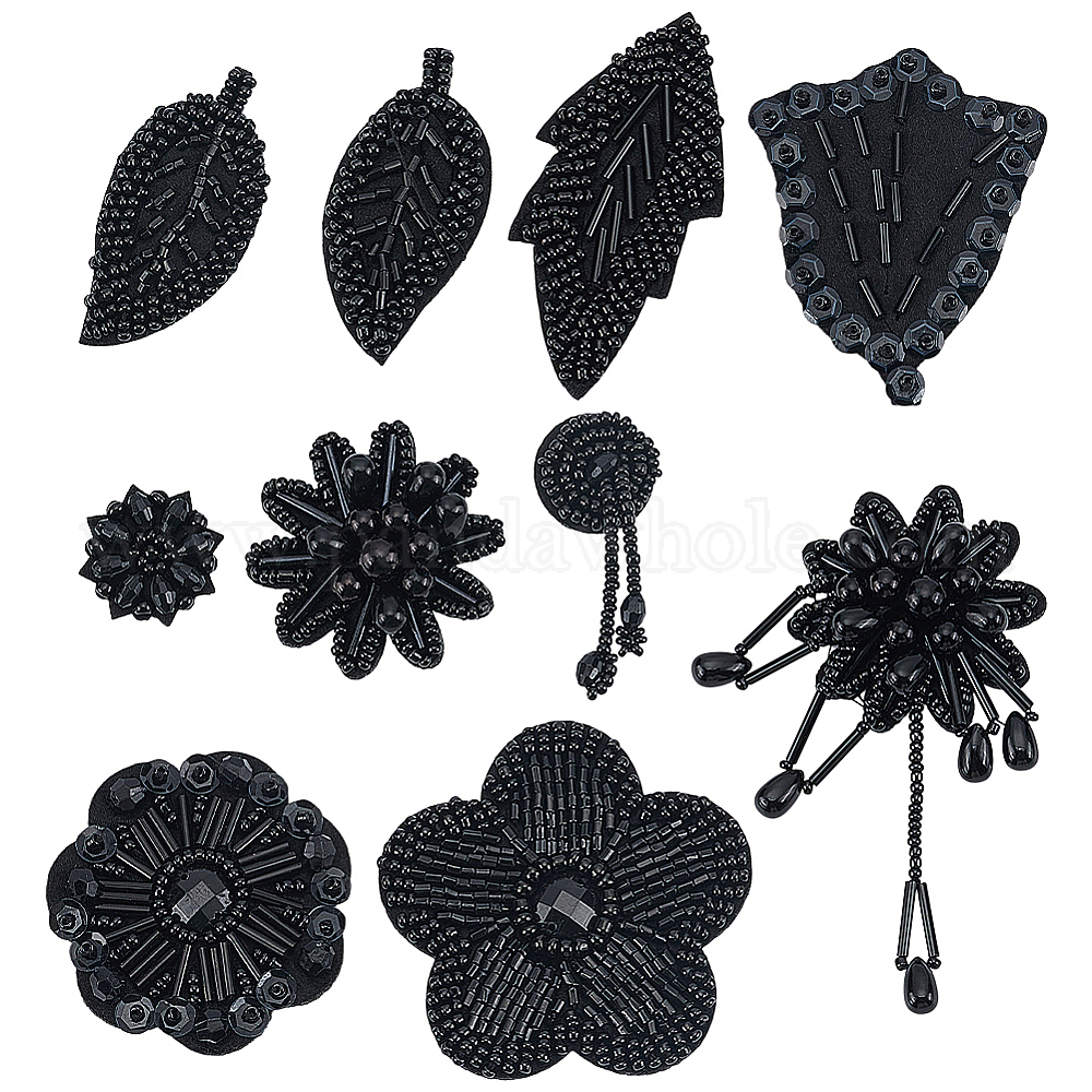 10шт. 10 виды нашивок из фетра, полиэстера и стеклянных бусин для пришивания, швейные украшения, чёрные