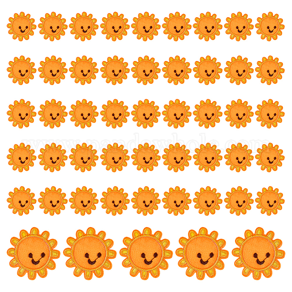 • Оранжевый 50шт. нашивки из ткани с компьютерной вышивкой в виде солнца с улыбающимся лицом, наклеить патч, аксессуары для костюма, аппликация, оранжевые, 40 мм