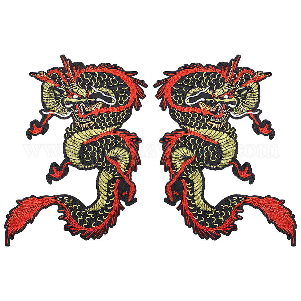 • Желтый Вышитые полиэстеровые нашивки с драконом, аксессуары для костюма, аппликация, желтые, 340x208 мм