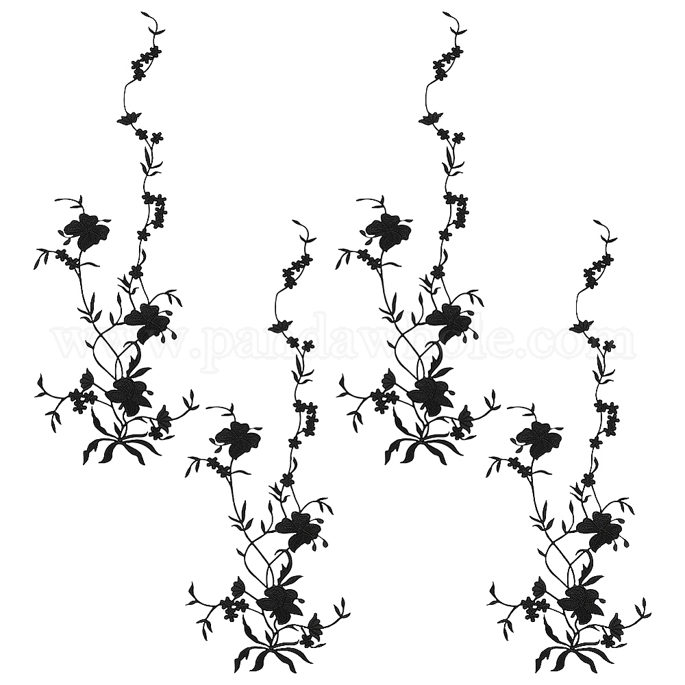 • Черный 4шт. аппликаций из нейлоновой ткани в форме цветка, украшенных вышивкой, гладить / пришивать заплатки, костюм украшение аксессуары, чёрные, 510x188x1 мм