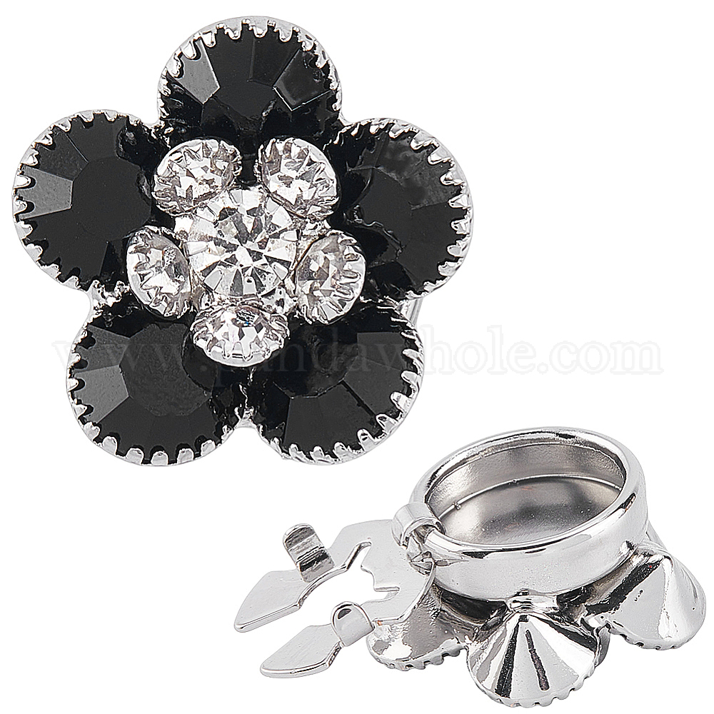 • Платина Кнопки латунь манжеты, со стразами, для аксессуаров одежды, цветок, платина, 27.5x14 мм, отверстие : 5 мм