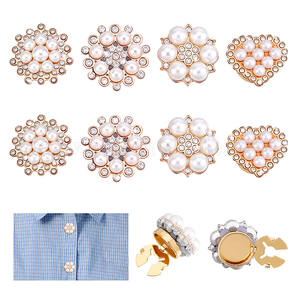 • Золотой 8шт 4 стиль запонки из сплава, смолой и горный хрусталь, Сердце & плоские круглые, золотые, 20~30x23~30x12~15 мм, 2 шт / стиль