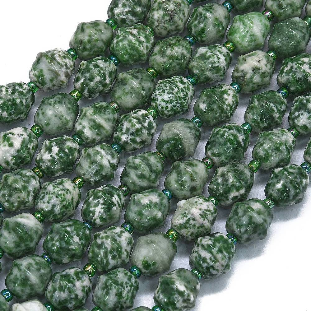 • Камень с Зелеными Точками Натуральные зеленые пятна яшмовых нитей, колокол, с бисером, 11x10 мм, отверстие : 1.4 мм, около 31 шт / нитка, 15.35'' (39 см)