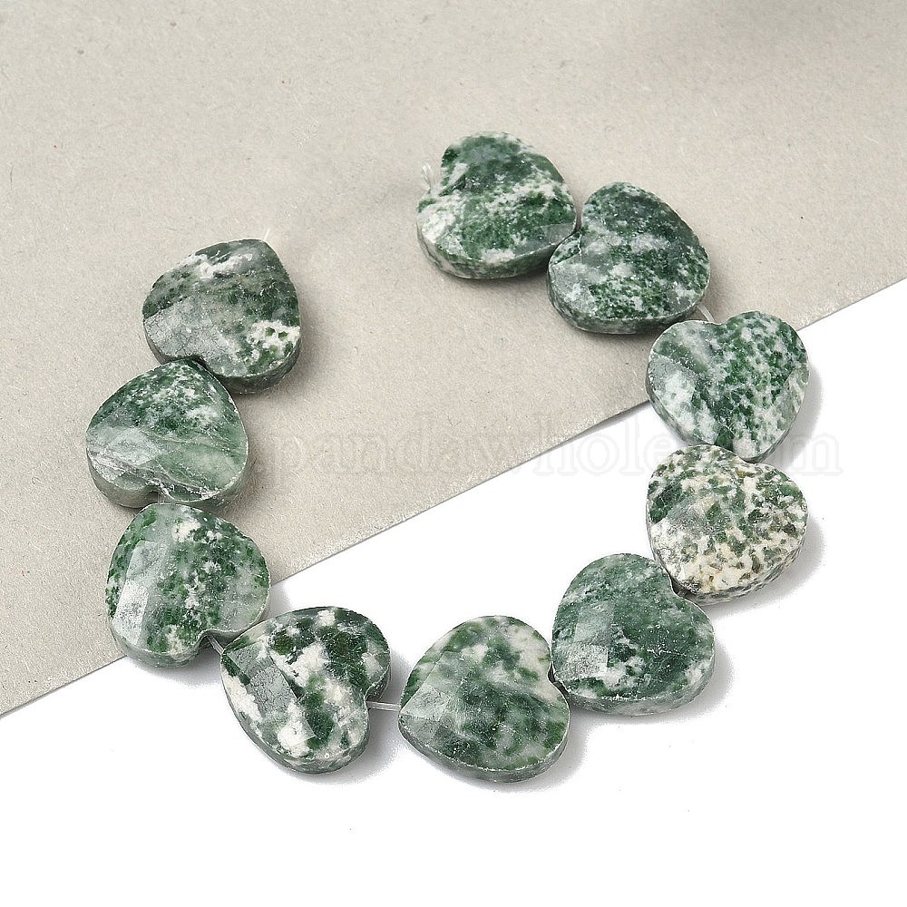 Натуральные зеленые пятна яшмовых нитей, граненые, сердце