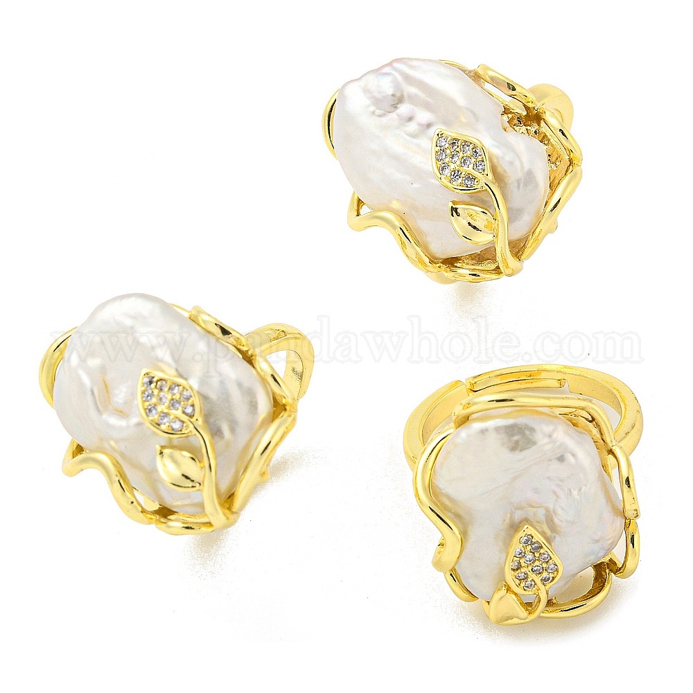 Самородок натурального жемчуга в стиле барокко с кольцом-манжетой с открытым листом, латунное кольцо на палец