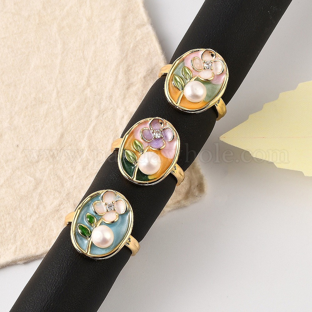 Манжеты с латунной эмалью, с натуральным пресноводным жемчугом, реальный 18 k позолоченный, овальные с цветком