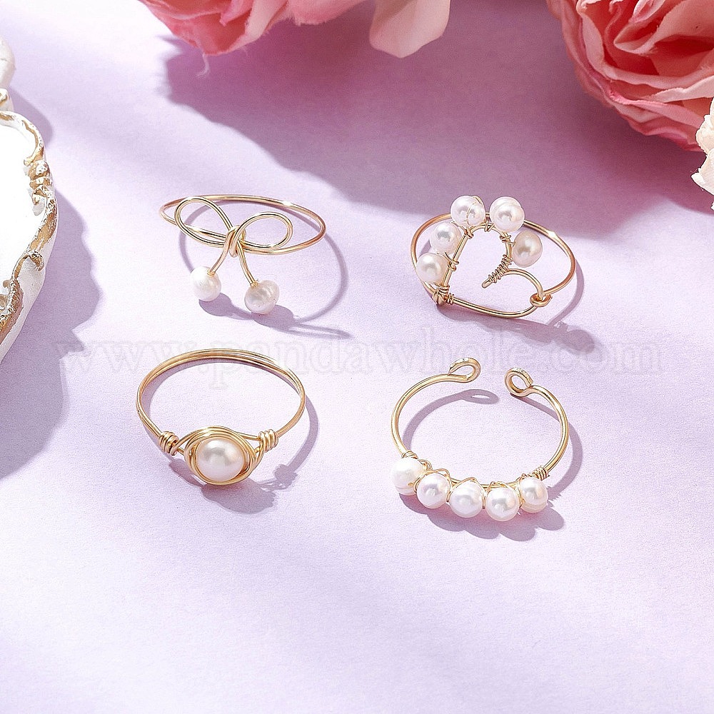 Кольца на палец с круглым натуральным культивированным пресноводным жемчугом, кольца из медной проволоки, сердце и лук
