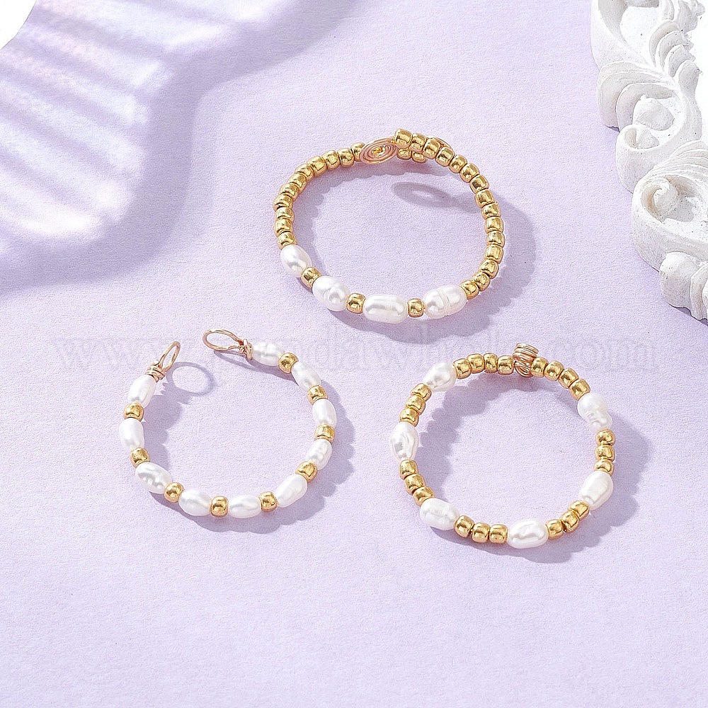 3колец с медной проволокой из натурального культивированного пресноводного жемчуга, с бисером
