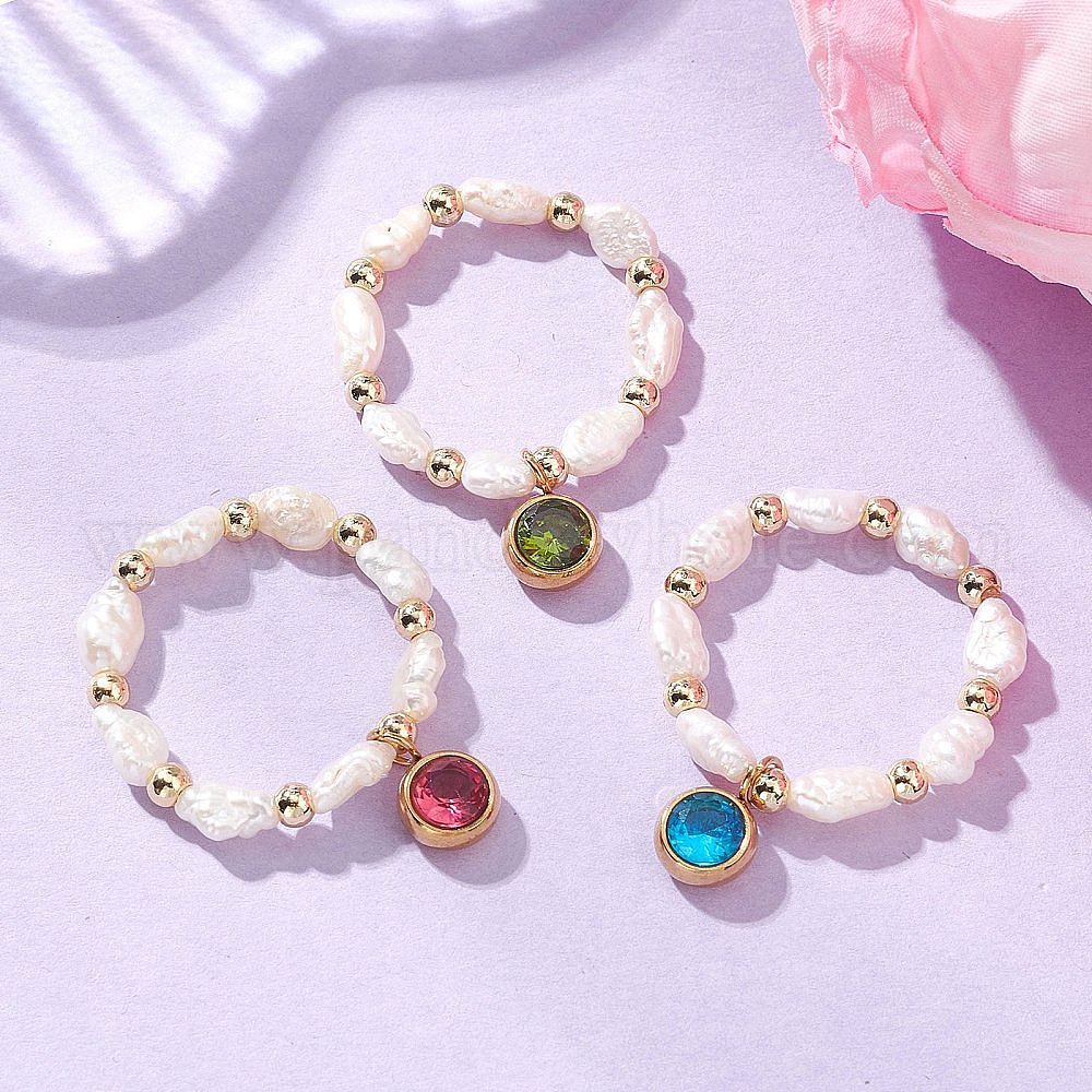 3колец из натурального культивированного пресноводного жемчуга, эластичных, для пальцев, с 304 круглыми подвесками из нержавеющей стали, инкрустированными микрофиброй., реальный 18 k позолоченный