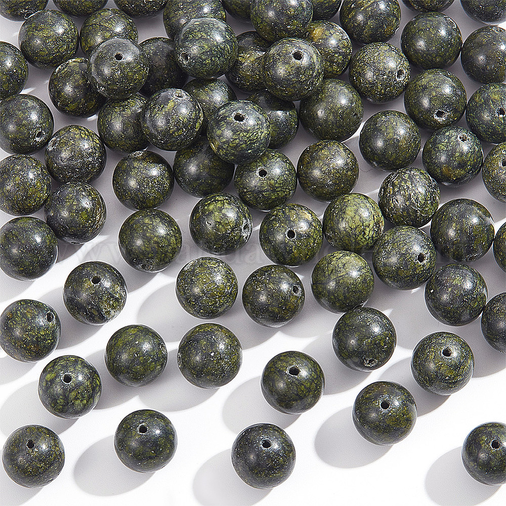 натуральный змеевик/зеленое кружево каменные бусины нити: около 10 мм в диаметре, отверстие : 1 мм, около 36 шт / нитка, 15 дюйм, 2 пряди;