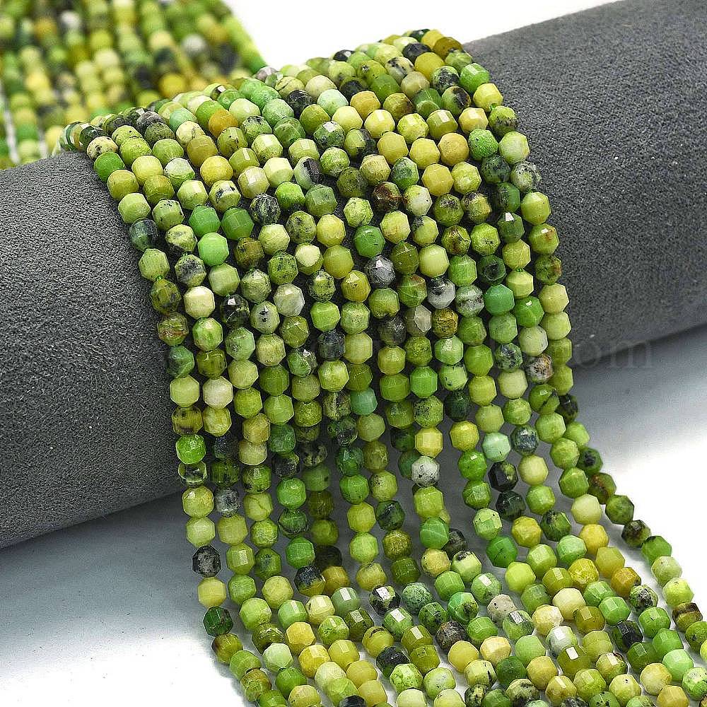 Природные серпантину нитей бисера, энергетическая призматическая огранка с двойными концами бусины, граненые двухконусные